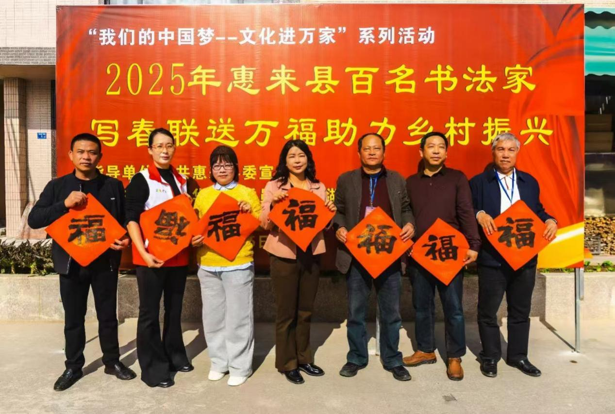 2025年1月15日,在新春佳节到来之际,为传承和弘扬中华优秀传统文化,惠来县委宣传部、惠来县文联、惠来县书法家协会联合华湖镇乡村振兴人才驿站,走进华湖镇堡内村,举办“我们的中国梦——文化进万家”2025年惠来县百名书法家新年下基层写春联送万福助力乡村振兴活动。此次活动旨在通过文化惠民活动,丰富群众精神文化生活,助力乡村振兴。
