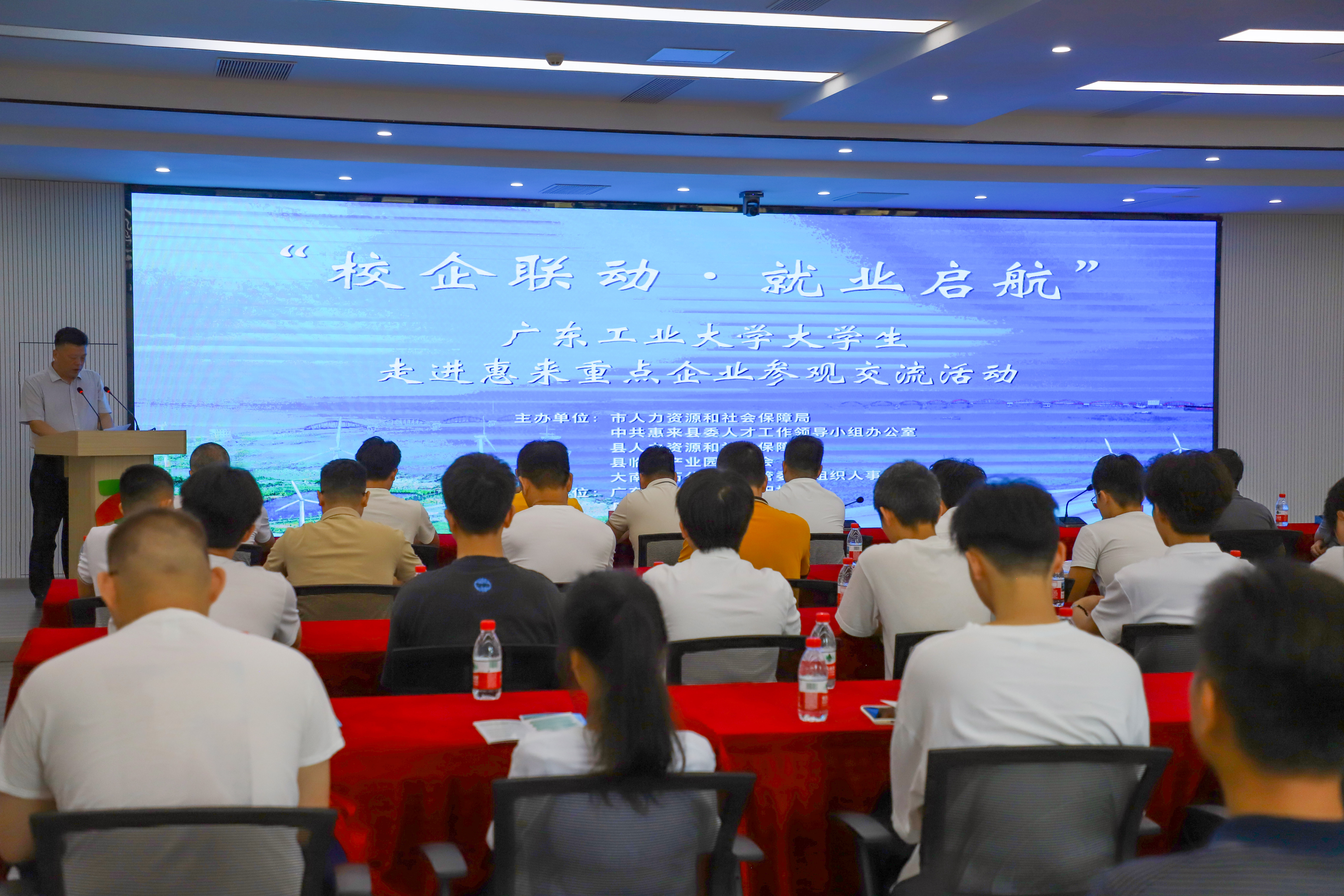 为积极响应省“百万英才汇南粤”行动计划,全面落实市委、市政府关于建设新时代人才强市的部署要求,推动校企深度合作,搭建企业与大学生交流直通车,鼓励引导优秀学子扎根惠来、服务惠来,7月7日,我县组织开展广东工业大学(揭阳校区)大学生走进惠来重点企业参观交流活动。市人社局四级调研员、人才科科长黄旭安,市人才交流管理局局长林滉,广东工业大学揭阳校区教学管理办主任陈鸿志,县临港产业园管委会主任林辉钦,县委组织部部务委员史华伟,县人社局副局长、县乡村振兴人才驿站站长黄升锋等领导参加活动。县人社局局长林晓生主持活动。 黄旭安在活动上讲话,希望同学们要珍惜机会,用心观察,勤于提问,积极交流,将参观交流的收获与自身专业学习、职业规划结合起来,不断调整和完善自己的知识结构和能力储备。希望企业家们要持续深化校企合作,积极拓展合作渠道,共同探索人才培养新模式,实现人才培养与企业需要的“无缝对接”;要积极搭建成长平台,为青年学子提供更多实习、见习和就业岗位,完善人才培养体系,畅通职业发展通道,让优秀人才引得进、留得住、用得好;要主动反馈人才需求,帮助地方政府更好地优化政策、改进服务、精准施策。 陈鸿志在活动上致辞,希望企业能够提供更多的实习与就业机会,为学生们的成长助力,实现人才与企业双赢局面。同时,号召广工学子们积极投身到惠来企业的发展建设中,为企业注入源源不断的新鲜血液与创新活力,为地方经济发展贡献力量。 活动上,播放惠来县产业合作推介宣传片,林辉钦介绍园区建设情况。 随后,师生们先后到广东蓝水深远海装备科技有限公司、揭阳亨通海洋技术有限公司、国电投(揭阳)前詹风电有限公司、广东粤电靖海发电有限公司,中国石油天然气股份有限公司广东石化分公司,走进企业展厅、生产车间、办公区域等场所参观考察,通过听取汇报、观看宣传片等形式,深入了解产业园区、驻园重点企业发展现状、办公环境及人才需求情况,并围绕行业发展、人才招聘等问题与企业代表进行互动交流。 市人社局、县委人才办、县人社局、县临港产业园管委会、大南海石化工业区管委会组织人事局、市人才驿站、县乡村振兴人才驿站、中国石油广东石化分公司有关领导,广东工业大学(揭阳校区)师生代表等参加活动。